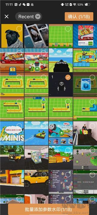 3、在水印板塊中隨意挑選一張,點(diǎn)進(jìn)去,選擇想要添加水印的照片,最多可以選擇18張;