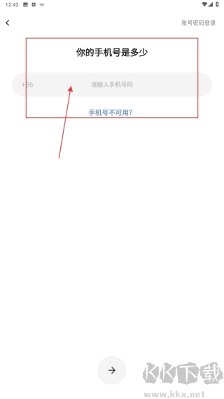 2. 點(diǎn)擊"輸入手機(jī)登錄"按鈕,進(jìn)入手機(jī)號(hào)填寫頁面。