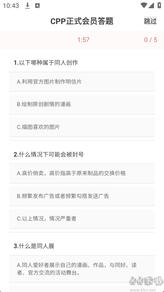 2、注冊成功后自動(dòng)進(jìn)入答題環(huán)節(jié)
