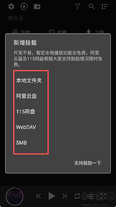 2、選擇要掛載的網(wǎng)盤,目前支持阿里云盤和115網(wǎng)盤