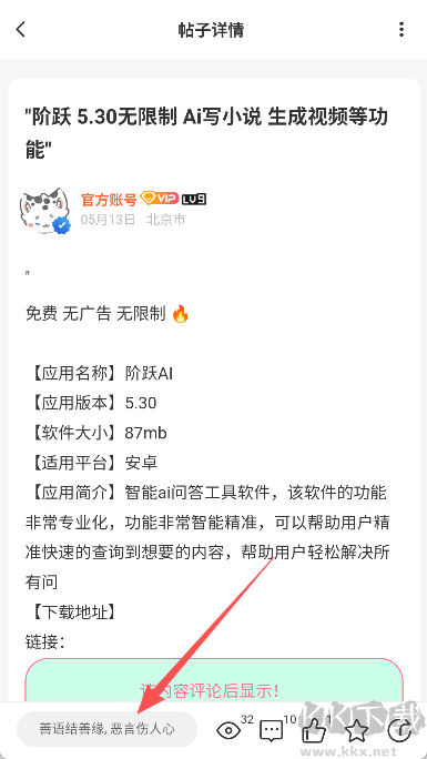 4、在評論區(qū)任意留言后,即可顯示應(yīng)用下載鏈接;