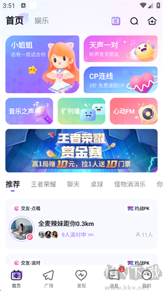 1、花樣玩法K歌、陪聊、真心話大冒險、處CP等多元互動模式,24小時不間斷,隨時隨地開啟社交樂趣,等你來體驗心動瞬間。