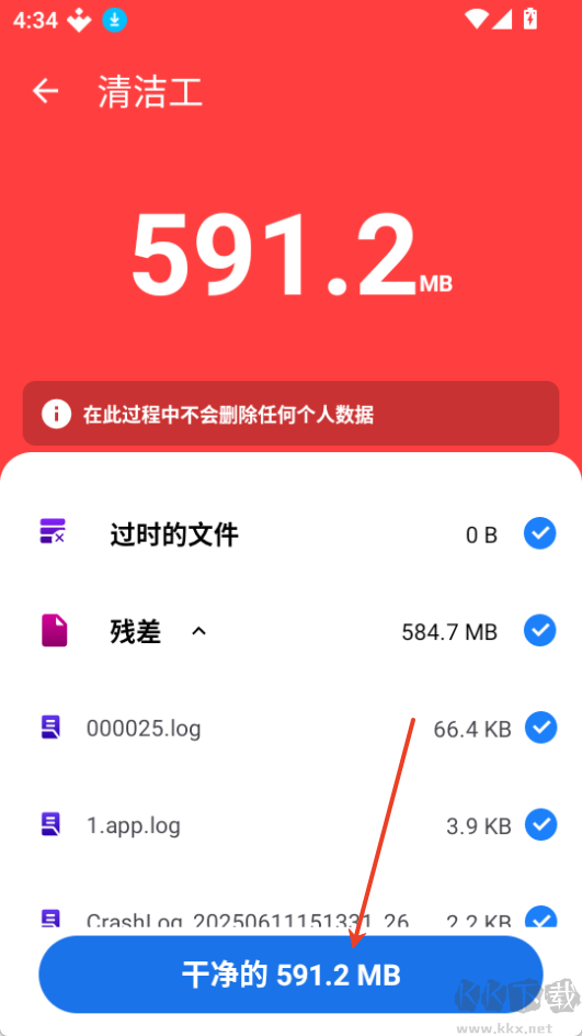 4、掃描完成后,點(diǎn)擊底部藍(lán)色按鈕即可完成清理。