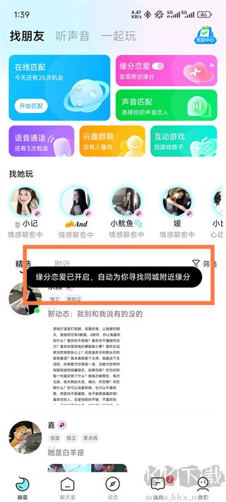 2、緣分戀愛開啟后系統(tǒng)會自動為你尋找同城附近緣分