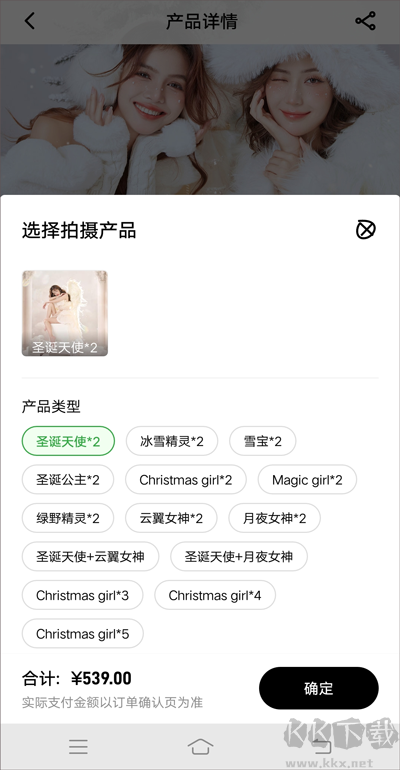 3、選好拍照風(fēng)格后,進入該風(fēng)格詳情頁面,點擊【立即預(yù)約】,選好產(chǎn)品類型后點擊【確定】。