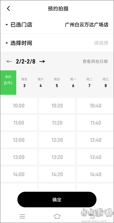 4、進入【預(yù)約拍攝】頁面,挑選自己方便的門店與時間,之后再次點擊【確定】。