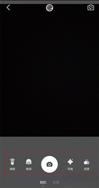 2、選擇相機(jī)后即可進(jìn)入美顏相機(jī)界面,上方為相機(jī)選景框,選景框下方則是各個(gè)美顏濾鏡功能,大家可根據(jù)需要使用。