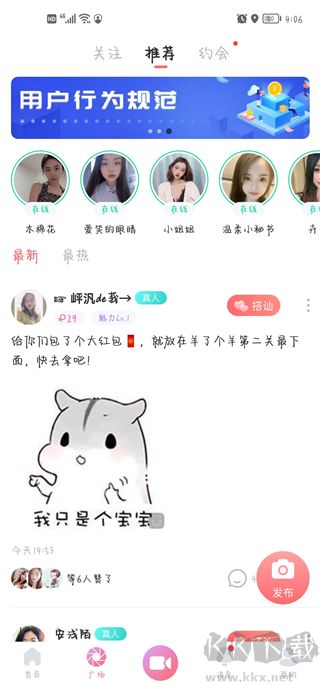 6、進(jìn)入“廣場”可瀏覽他人動態(tài),也可發(fā)布自己的內(nèi)容;
