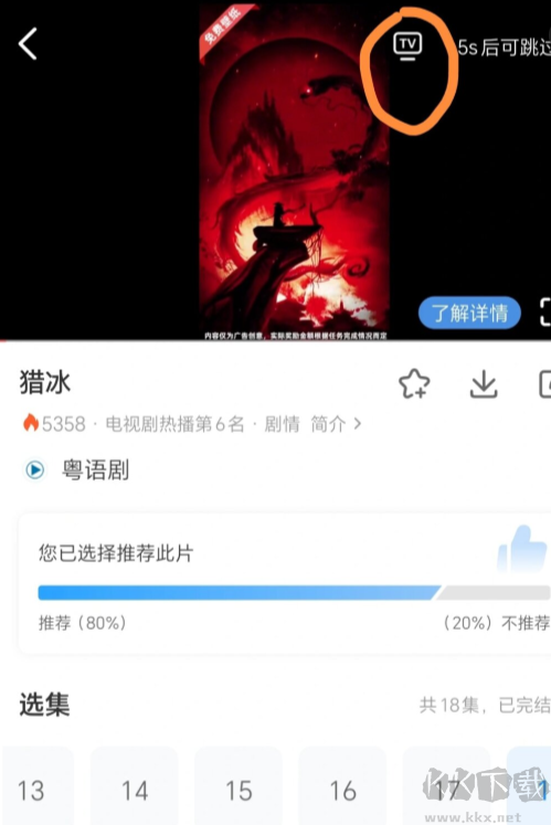 3、在手機應用視頻播放頁點擊投屏按鈕