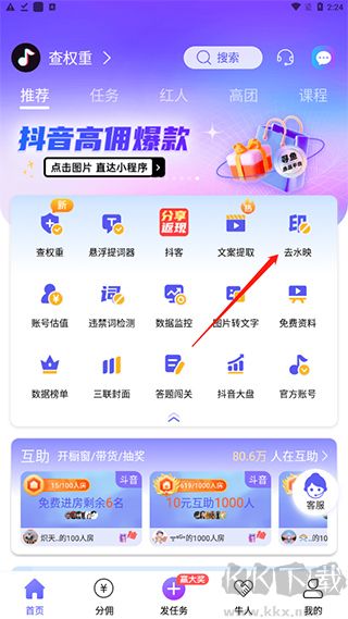 1、進入手機的輕抖,點擊去水印。