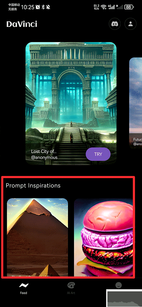1、打開(kāi)達(dá)芬奇 app 后,在 feed 界面里挑選你喜歡的素材。