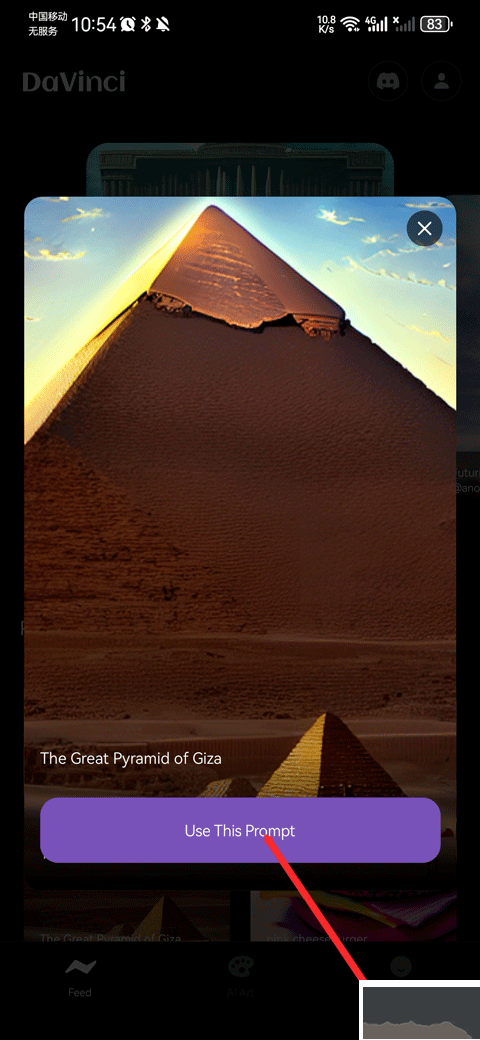 7、分享您的創(chuàng)作并走紅。要是您用達(dá)芬奇強(qiáng)大的人工智能藝術(shù)生成器做出了自己喜歡的作品,能直接從應(yīng)用里把您的杰作分享到其他平臺(tái)。