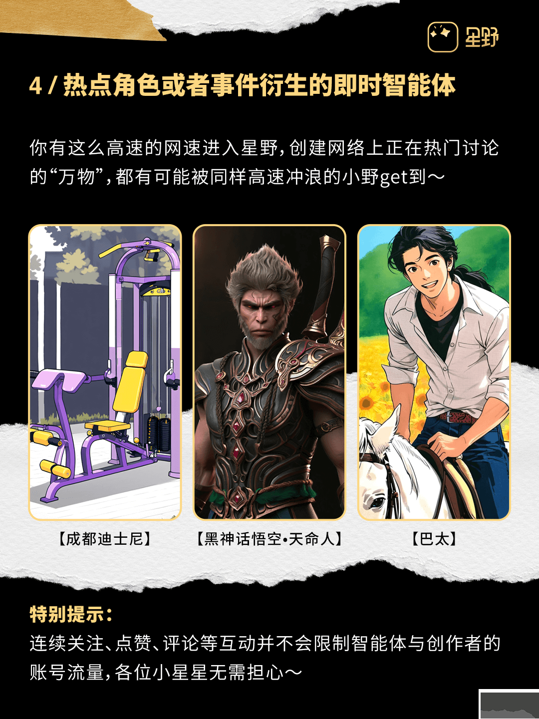 星野憑借全球領(lǐng)先的多模態(tài)AIGC技術(shù),構(gòu)建了一個(gè)開放、自由的AI智能體創(chuàng)作與分享社區(qū)。在這里,你可以與AI建立伙伴關(guān)系,它們將陪伴用戶的娛樂、工作與學(xué)習(xí)日常。這些AI擁有極大的可塑性和自由度,可以成為你在平行世界中的AI伙伴,也可以扮演無所不知的助手,或是故事中的虛擬角色。只要你發(fā)揮創(chuàng)意,就可以創(chuàng)造屬于自己的智能體,并與其共同成長(zhǎng)。
