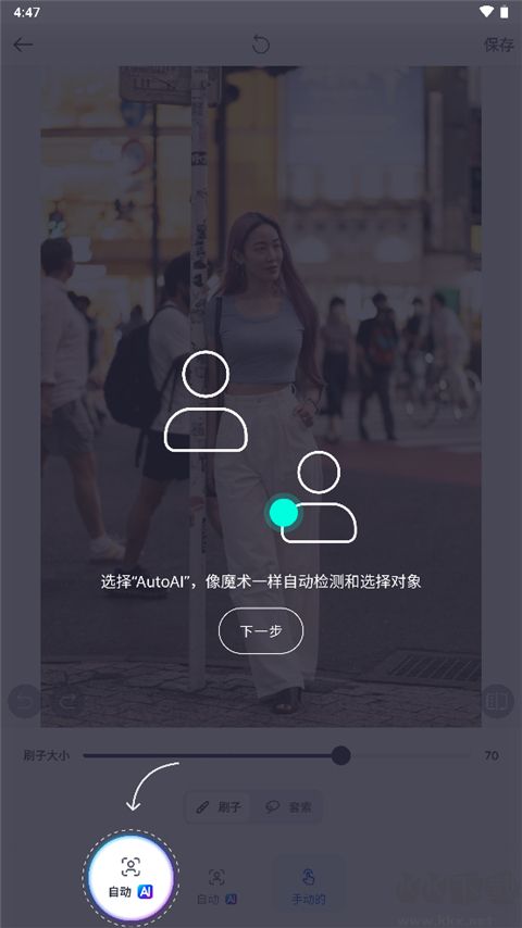 6、點擊 “刷子” 圖標(biāo),使用者能用畫筆手動描繪并選中圖像部分,還能借助橡皮擦去除對象。