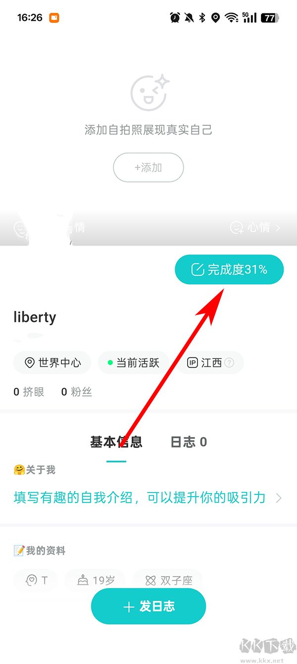 2、進入主頁之后,點擊完成度,去添加身份信息