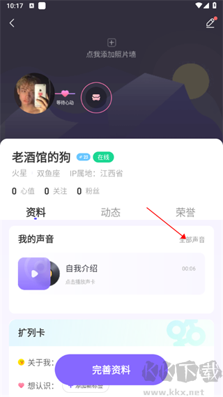 1、打開軟件,進入個人主頁,點擊“全部聲音”選項。