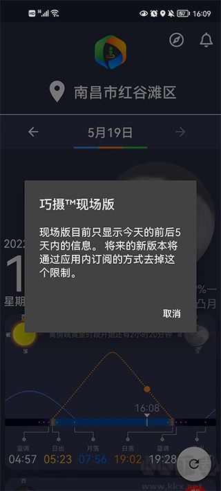 涵蓋日出日落時刻、月出月落時刻、晨昏光線、黃金拍攝時段、藍(lán)調(diào)拍攝時段、夜間時段、日月方位、日月檢索功能。