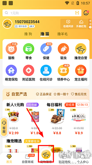 1、打開擼寵 app,點(diǎn)擊下方圖標(biāo)。