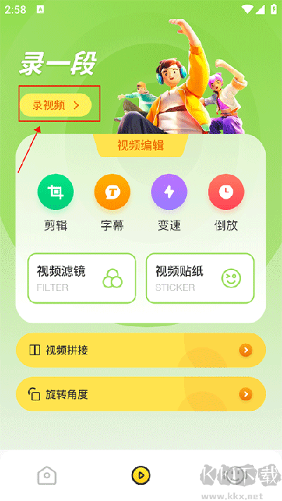 1、下載后打開進入app,在錄視頻界面中點擊上方的錄視頻;