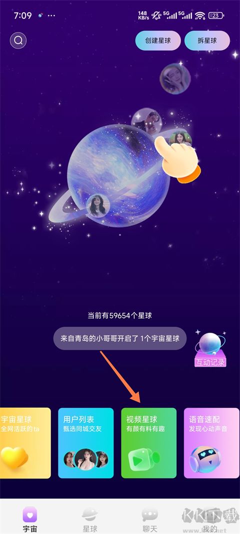 1、打開和ta App,點擊星球視頻