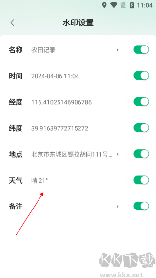 支持事項(xiàng)備注、拍攝時(shí)間、具體位置、地理坐標(biāo)、當(dāng)日天氣等多種信息;水印內(nèi)容可自由開啟或關(guān)閉,展示樣式靈活調(diào)整,滿足個(gè)性化需求。