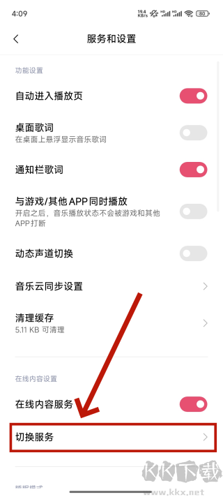 2、進(jìn)入“服務(wù)和設(shè)置”界面,點(diǎn)擊“切換服務(wù)”