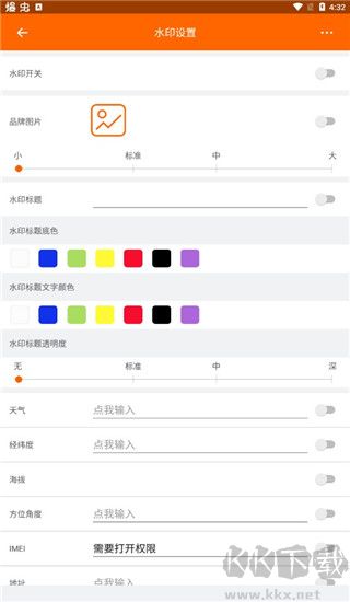 2、在“水印設置”中設置水印開關、天氣、地點、經(jīng)緯度、工程名稱等等。