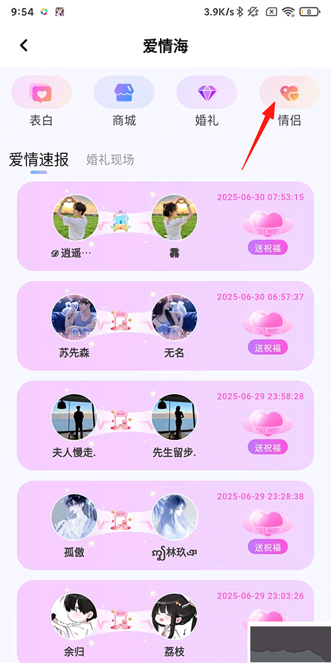 2、再點擊右上角的情侶。