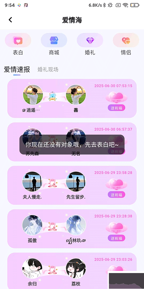 3、有對象的話就會展示在下方的愛情海,沒有的話需要先去表白哦。