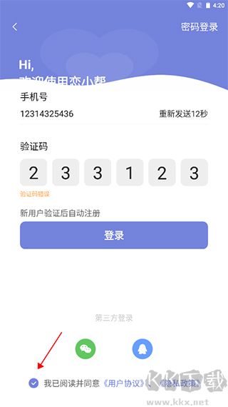 3、填好相關(guān)信息勾選一下同意用戶協(xié)議即可完成注冊登錄;
