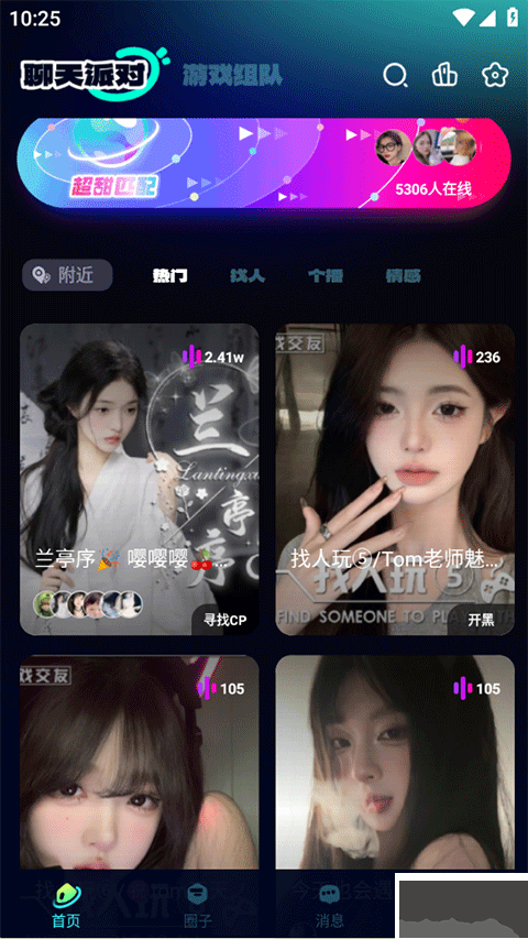 1、啟動(dòng)程序進(jìn)入主界面,可見兩大板塊,分別為交流聚會與游戲搭檔。