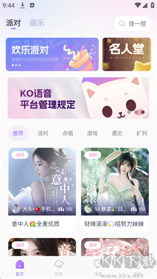 KOKO電競app是一款專注于電競開黑語音社交的軟件,支持在線互動、語音派對、交友社區(qū)等功能??梢栽谲浖?nèi)創(chuàng)建或者加入不同主題的房間,和其他用戶實時語音交流互動,通過聲音為紐帶社交,邂逅動聽聲音和有趣靈魂。匯聚了眾多高顏值、聲音甜美、才藝出眾的用戶,還會發(fā)現(xiàn)各類有趣內(nèi)容、結(jié)交志同道合的朋友,一同組隊游戲。喜歡的朋友快來下載試試吧!