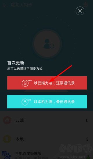 2、在聯(lián)系人同步頁面點(diǎn)擊屏幕中央的頭像,登錄你的qq或微信賬號。