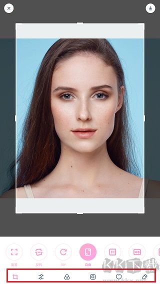 2、進(jìn)入編輯頁面,可以對(duì)圖片進(jìn)行剪裁、添加濾鏡、貼紙、邊框等