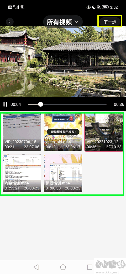 2、若選擇“視頻去水印”,請從相冊中導入需要處理的視頻,隨后點擊右上角的“下一步”進入編輯界面;