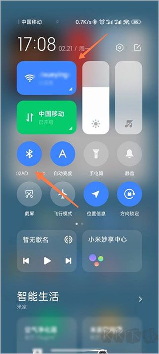 1、在通知欄中開啟手機的【W(wǎng)iFi、手機網(wǎng)絡、藍牙】;
