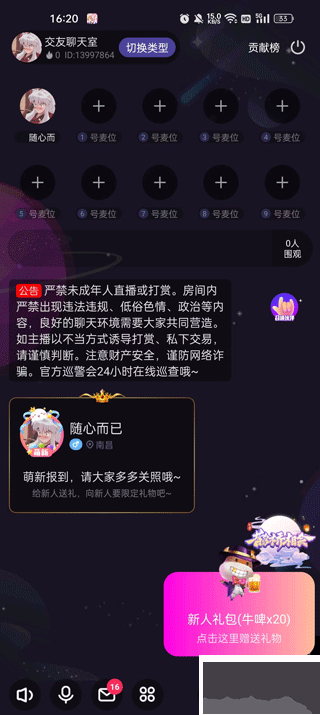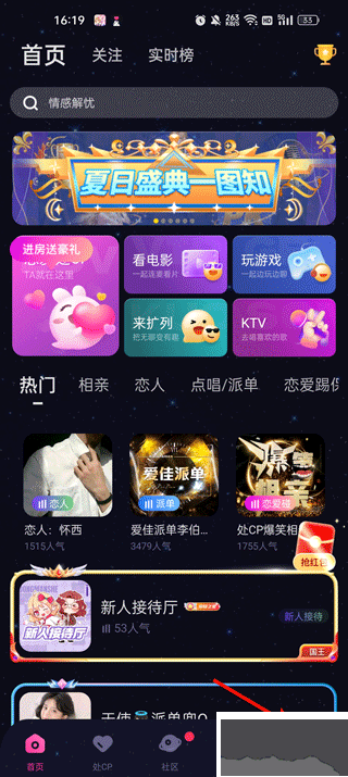 涵蓋K歌、擴(kuò)列、電競(jìng)、踢保、相親、處CP等多種主題,娛樂派對(duì)豐富多樣。支持多人語(yǔ)音連麥暢聊,設(shè)有相親房、電影房、電臺(tái)房、拍賣房、情侶房、K歌房等特色房間,打造屬于你的專屬線上聚會(huì)空間。