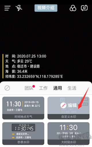 2、然后直接點(diǎn)擊“自定義水印”,進(jìn)入編輯狀態(tài)。