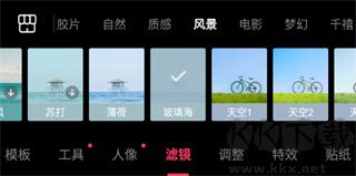1、在輕圖的編輯頁面,進入濾鏡欄目,點擊濾鏡即可添加各種各樣的濾鏡;
