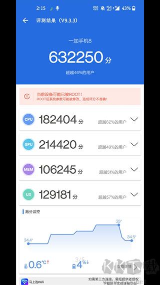 3、應(yīng)用配置后重啟手機(jī),再用安兔兔跑個分,整整提高了7萬分,基本上都是GPU提高的成績。