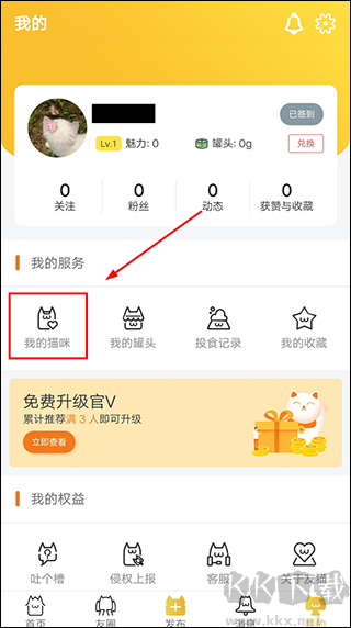 2、在【我的】頁(yè)面,點(diǎn)擊【我的貓咪】;