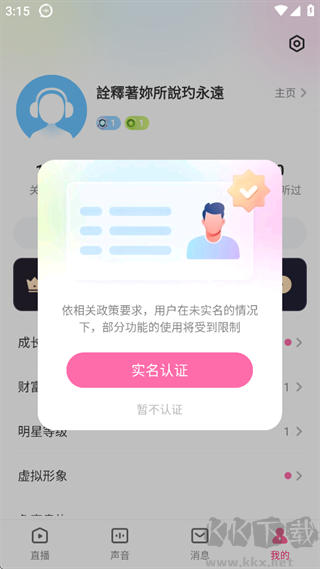 1、開通直播需要先進行【實名認證】。