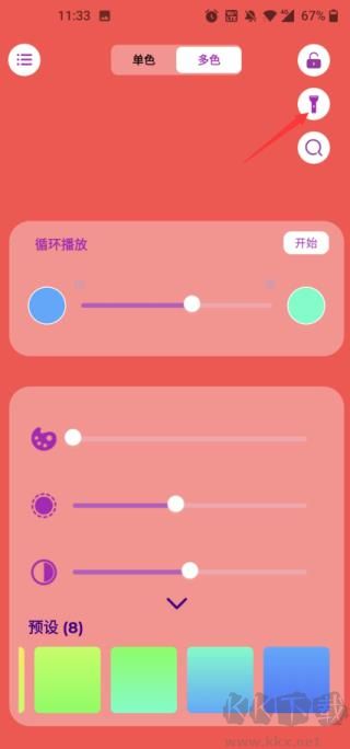 3、調(diào)節(jié)完氛圍燈的光亮后便能點(diǎn)擊右上方的手電筒打開燈光了。