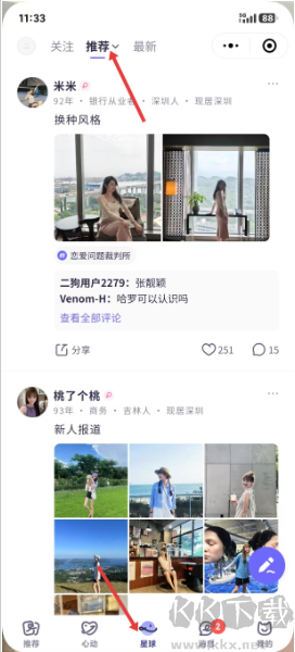 3、推薦頁(yè)集合本地單身者近況,呈現(xiàn)年紀(jì)職業(yè)地點(diǎn)等說明,配合日常影像與主題交流,使用者可表達(dá)欣賞或留言,在共享中遇見相似伙伴,邁出相識(shí)第一步。
