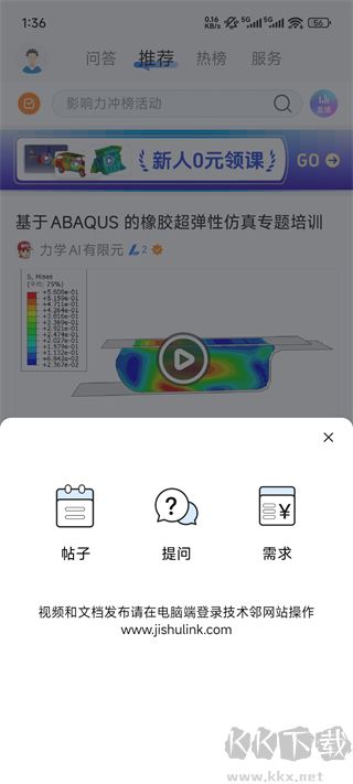 技術(shù)鄰App是一款工科技術(shù)社區(qū)應(yīng)用,覆蓋力學(xué)、汽車、機(jī)械、材料、航空、交通運(yùn)輸、電子電氣、通信、化工、能源、船舶、冶金、建筑土木、水利測繪等工科專業(yè),以及海量的CAE仿真、CAD優(yōu)化設(shè)計、3D打印等新技術(shù)應(yīng)用內(nèi)容,以及CAE仿真分析、CAD設(shè)計優(yōu)化、三維打印等前沿程序,從業(yè)者可以在這提問解惑、參與項目協(xié)作,觀看廠商直播、研習(xí)視頻課程與實戰(zhàn)案例,是工程人員交流觀點、建立聯(lián)系、展現(xiàn)專業(yè)能力的空間,推動技術(shù)實踐與經(jīng)驗共享。