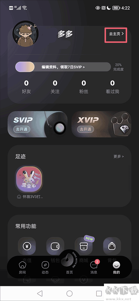 1、打開應用,在我的界面選擇并點擊“去主頁”的選項;