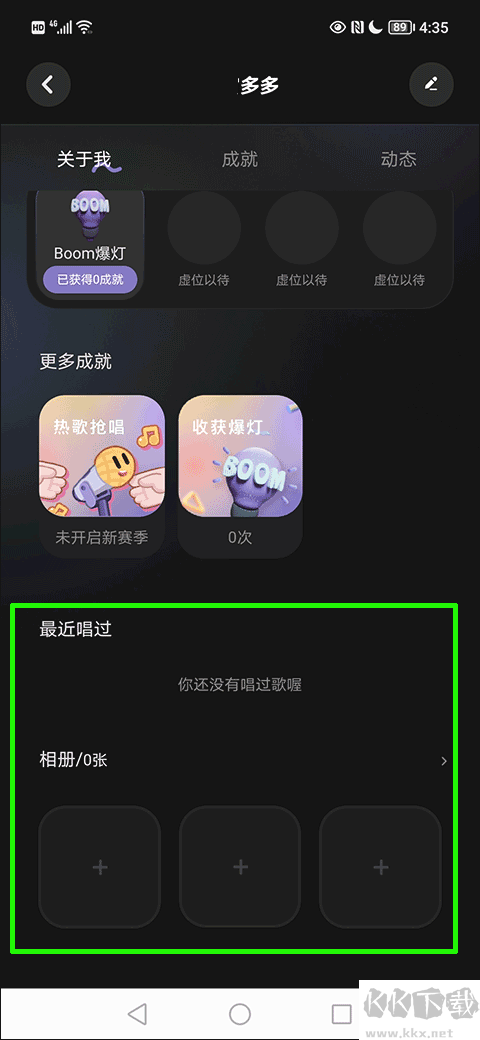 2、在主頁中,大家可以往下翻到最近唱過和相冊一欄;