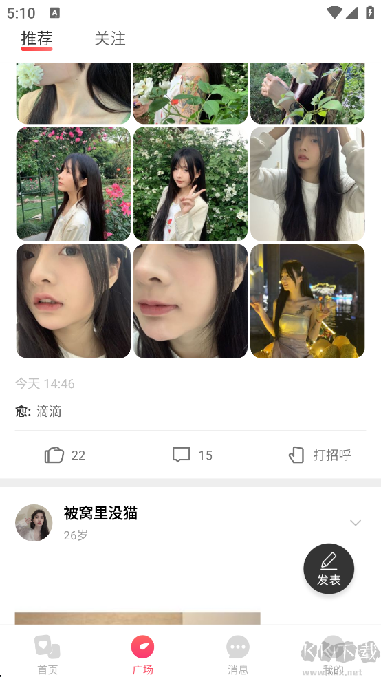 廣場動態(tài)讓你隨時掌握心動之人的最新分享,也能自由發(fā)布個人生活點(diǎn)滴,全方位展現(xiàn)精彩自我——茫茫人海中,緣分或許就在此刻悄然發(fā)生。