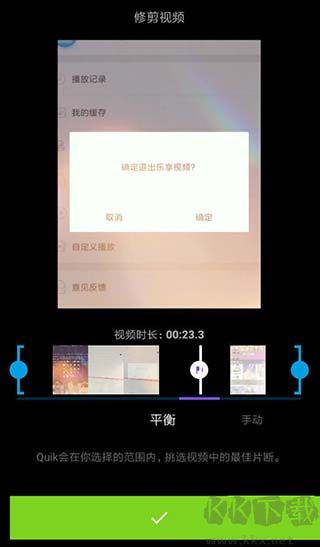 5、可設(shè)定視頻總時(shí)長(zhǎng),Quik 將自動(dòng)適配鏡頭切換節(jié)奏與過(guò)渡效果。