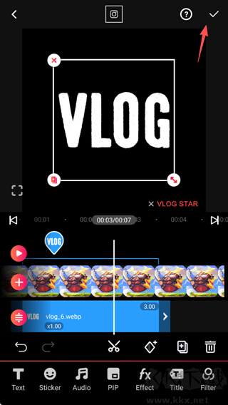 5、剪輯完成后,點(diǎn)擊右上角的【√】即可保存。